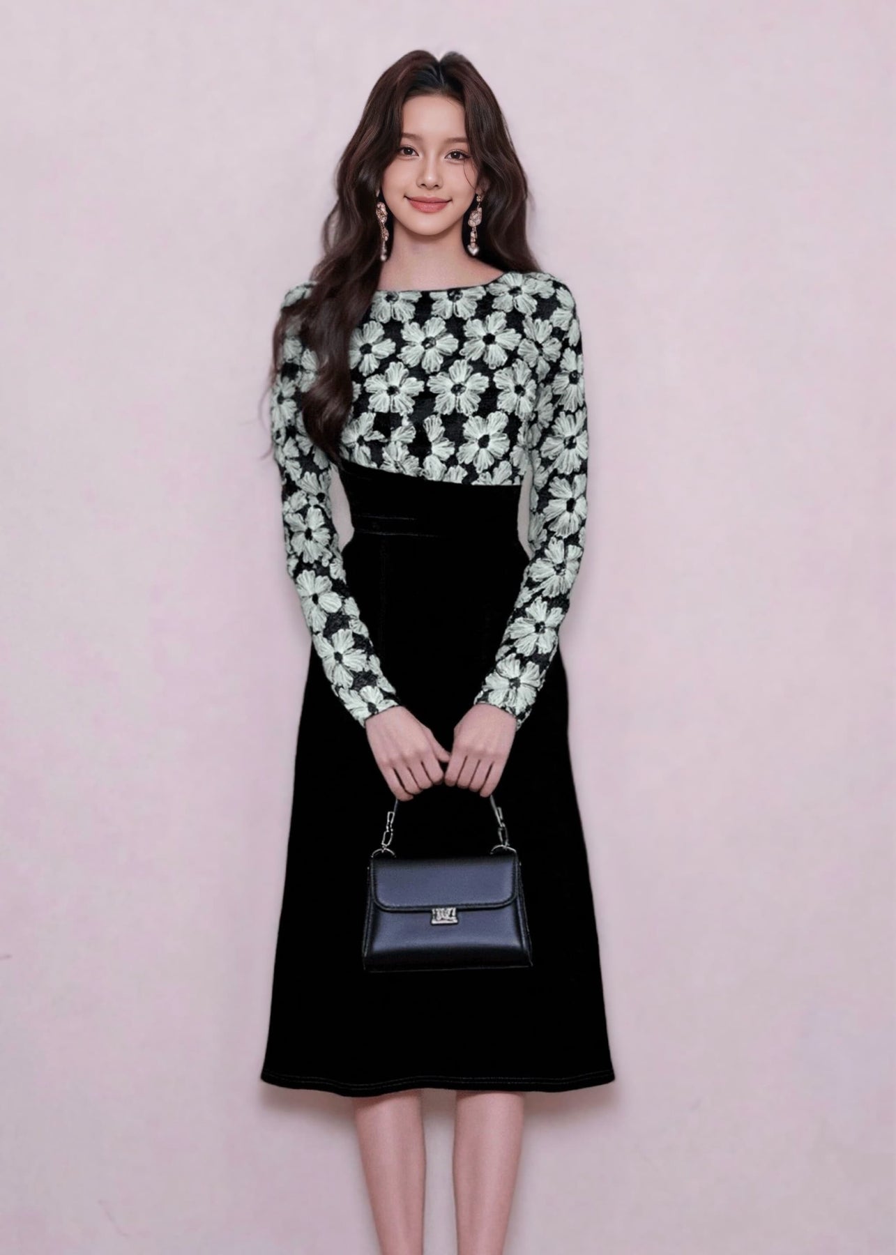 スカート部分には、ブラックのベロア素材を使用。