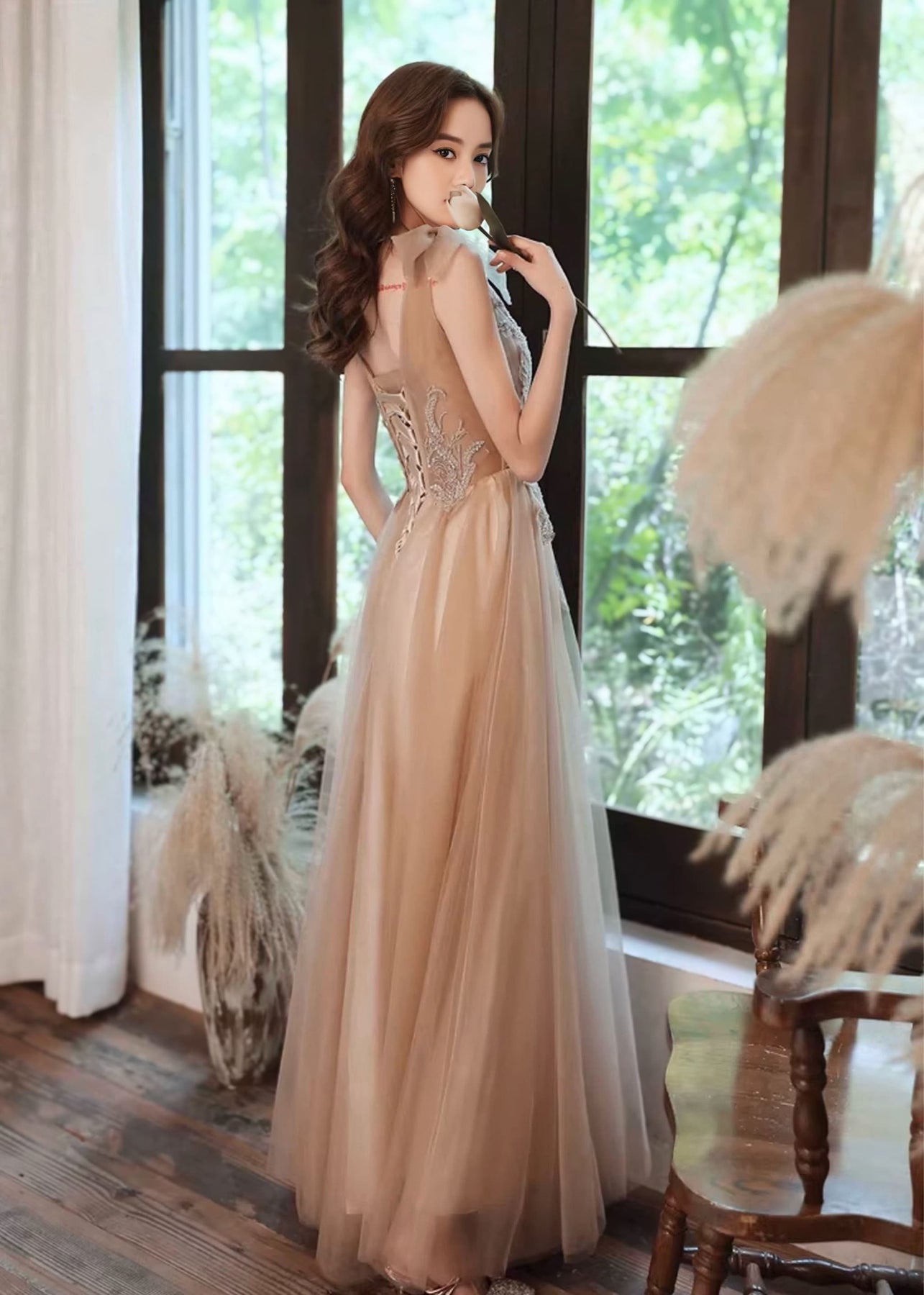 繊細な刺繍と透け感を活かし、華やかさの中に静かな上質さを宿した一着です。
