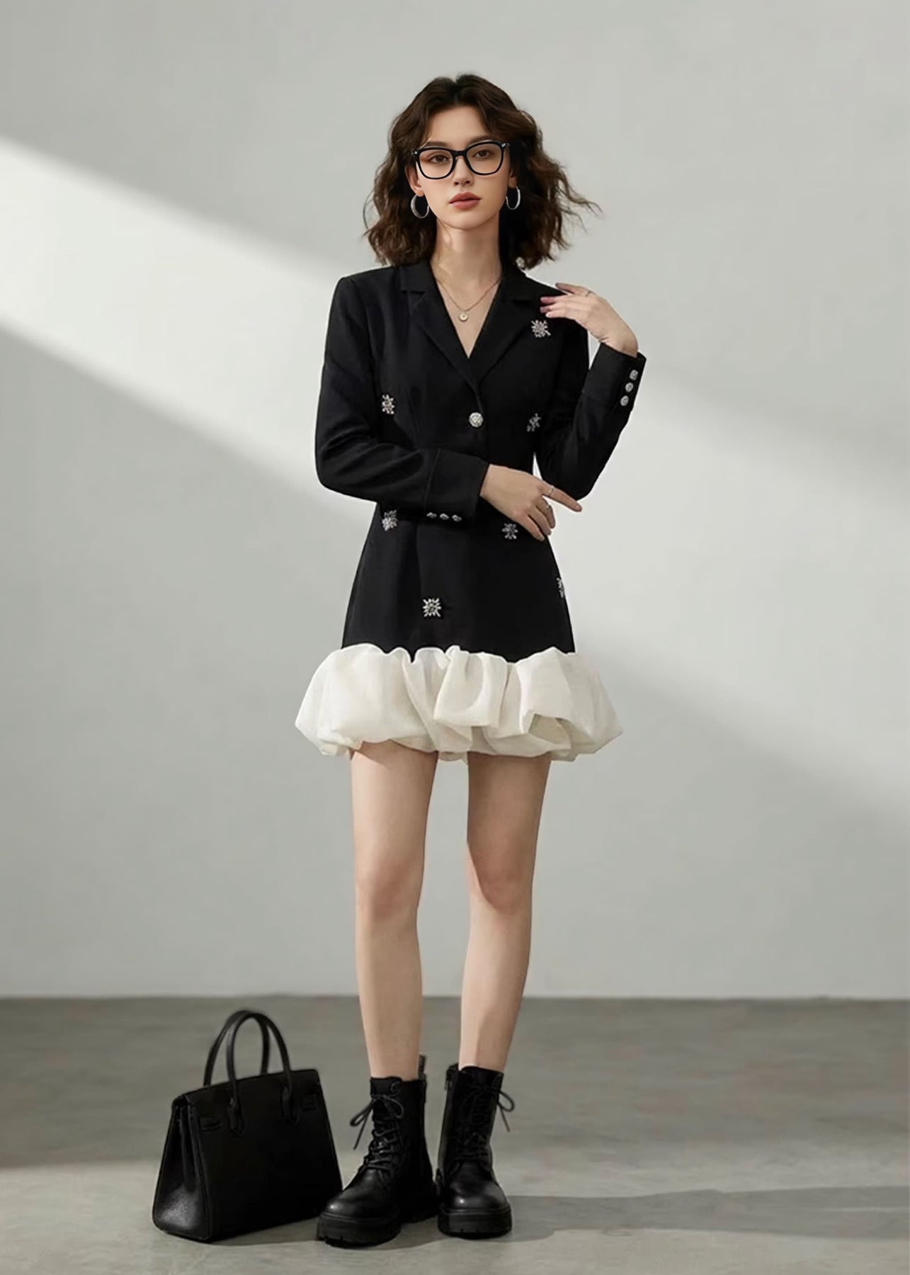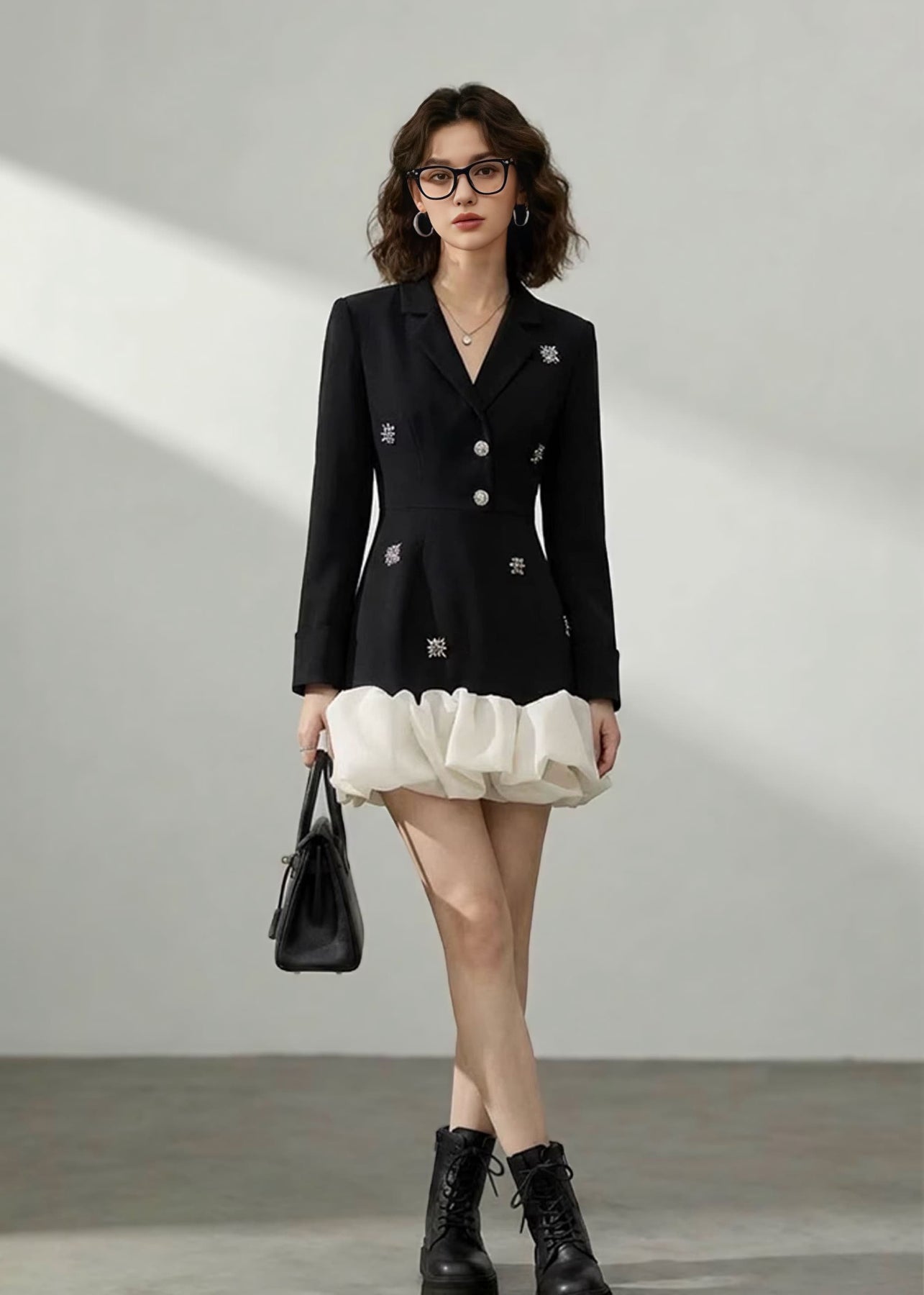 きりっとしたブラックカラーをベースに、構築的なシルエットが大人っぽく、モードな雰囲気を演出します。