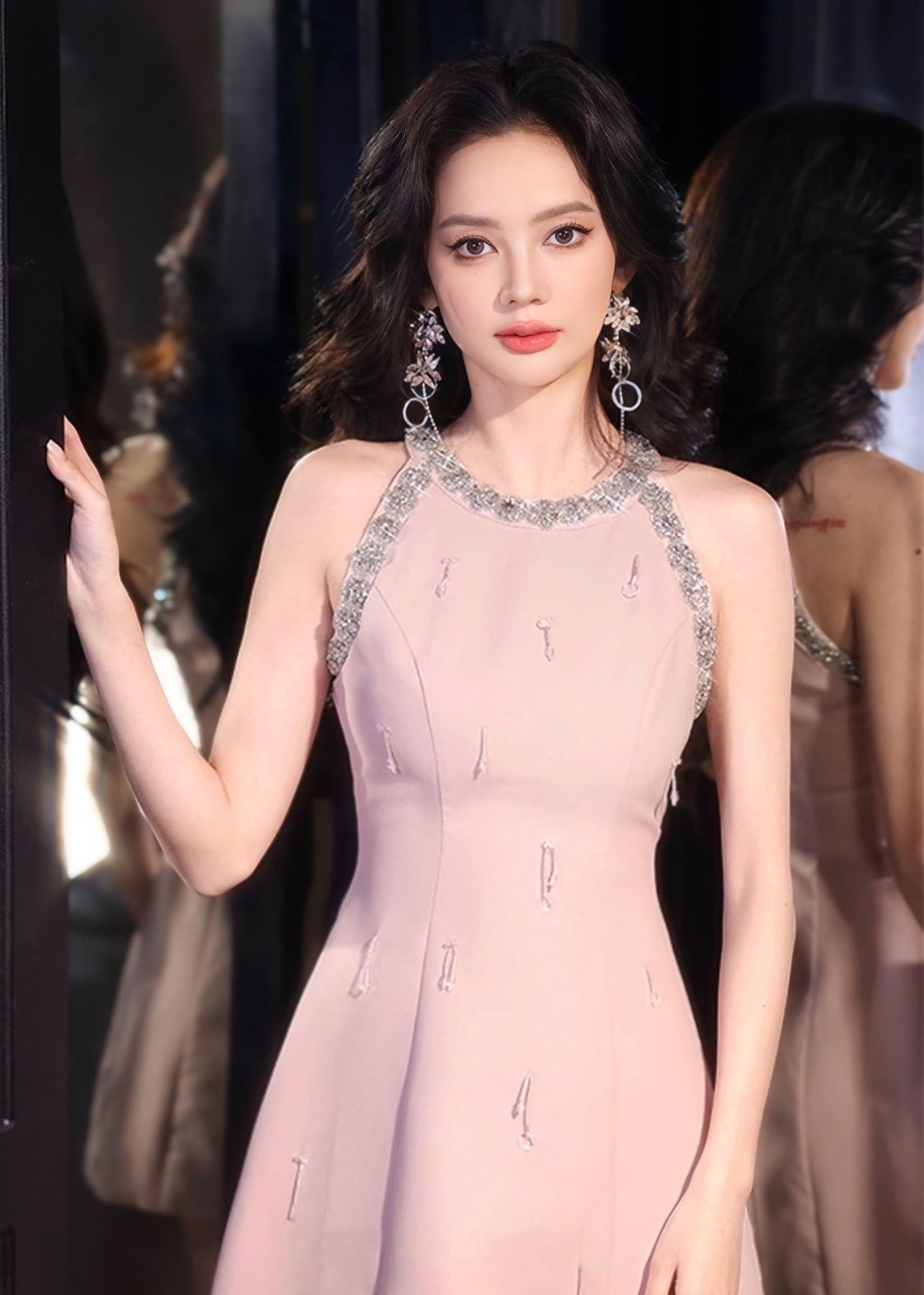 軽やかなミニ丈が脚をすらりと長く見せ、特別な日のドレスアップにぴったり。