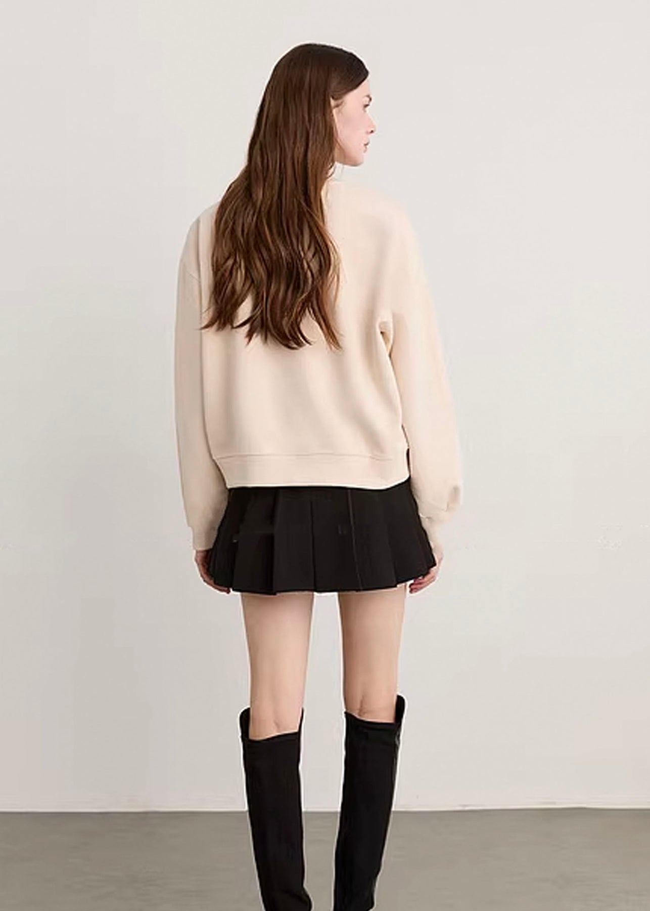 きらりと輝くビジューがカジュアルなスウェットにフェミニンさと特別感をプラス。甘くなりすぎない配置とデザインで、大人のスタイリングにも自然になじみます。シンプルなボトムスと合わせるだけで、コーディネートがぐっと洗練された印象に。