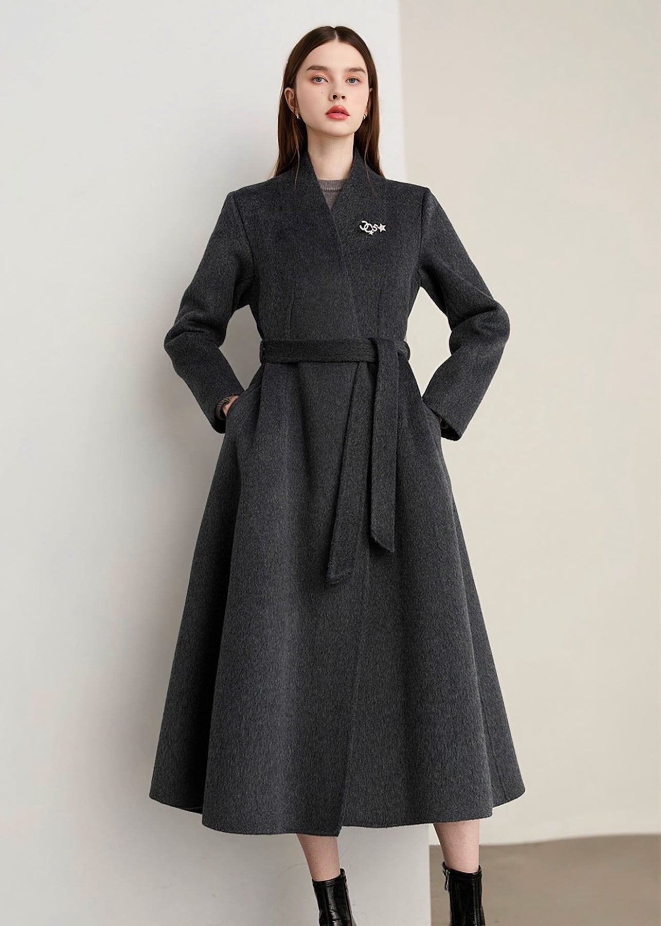 前を開けてさらりと羽織れば抜け感のある印象に、ベルトを締めればクラシカルなドレスコートのような美しいラインに仕上がります。