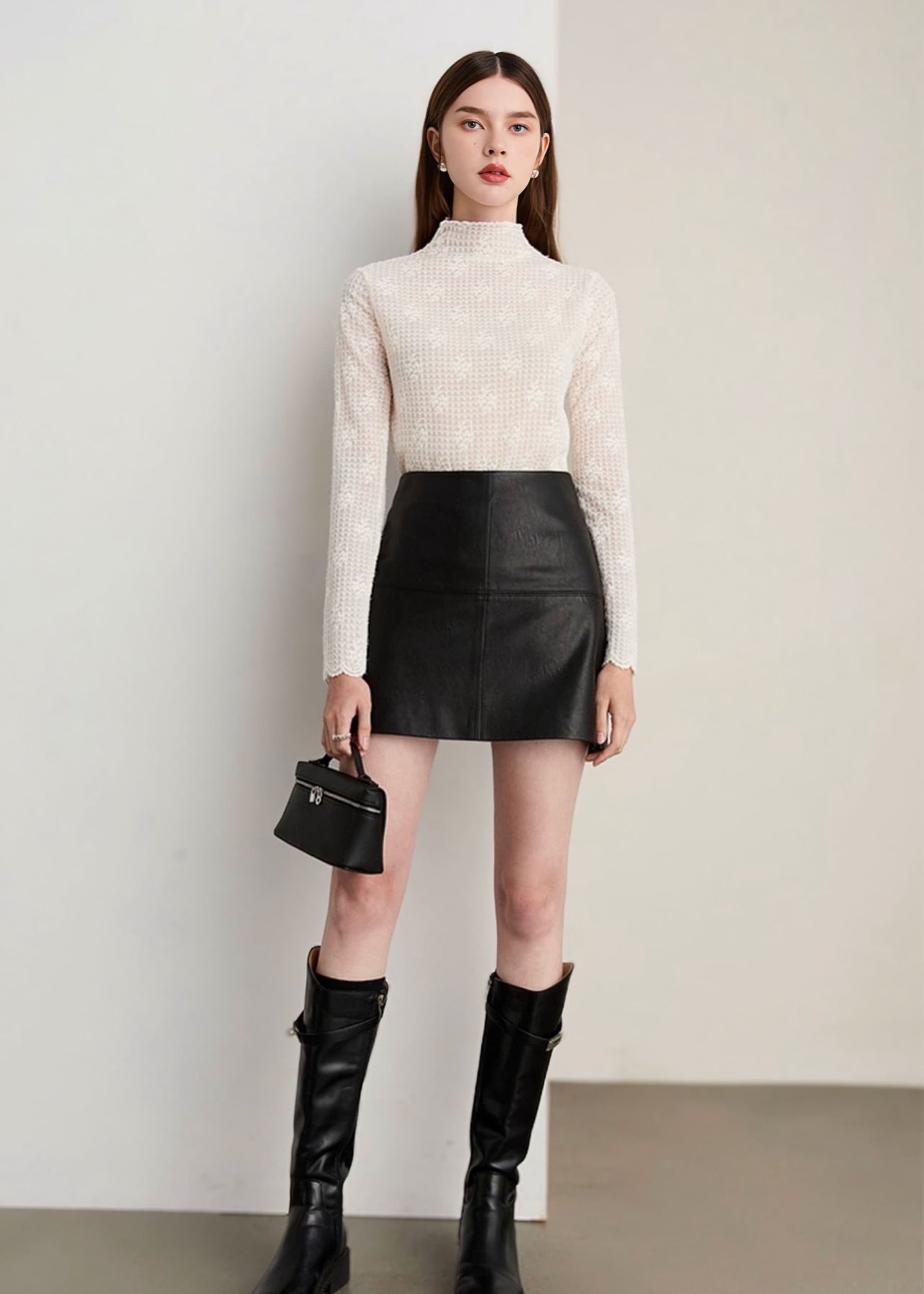 首元はセミタートルデザインで、きちんと感を演出しながらも程よい抜け感のある大人スタイルを叶えます。